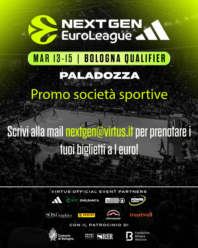 🏀 DAL 13 AL 15 MARZO 2026 Bologna diventerà la Capitale del basket giovanile continentale ospitando l’Adidas NextGen EuroLeague 2026, la più prestigiosa competizione europea Under 18 per club, giunta alla sua 24ª edizione. Un appuntamento che rappresenta molto più di un semplice torneo: è una vetrina internazionale per i talenti di domani e, allo stesso tempo, un riconoscimento alla tradizione e alla centralità cestistica della città