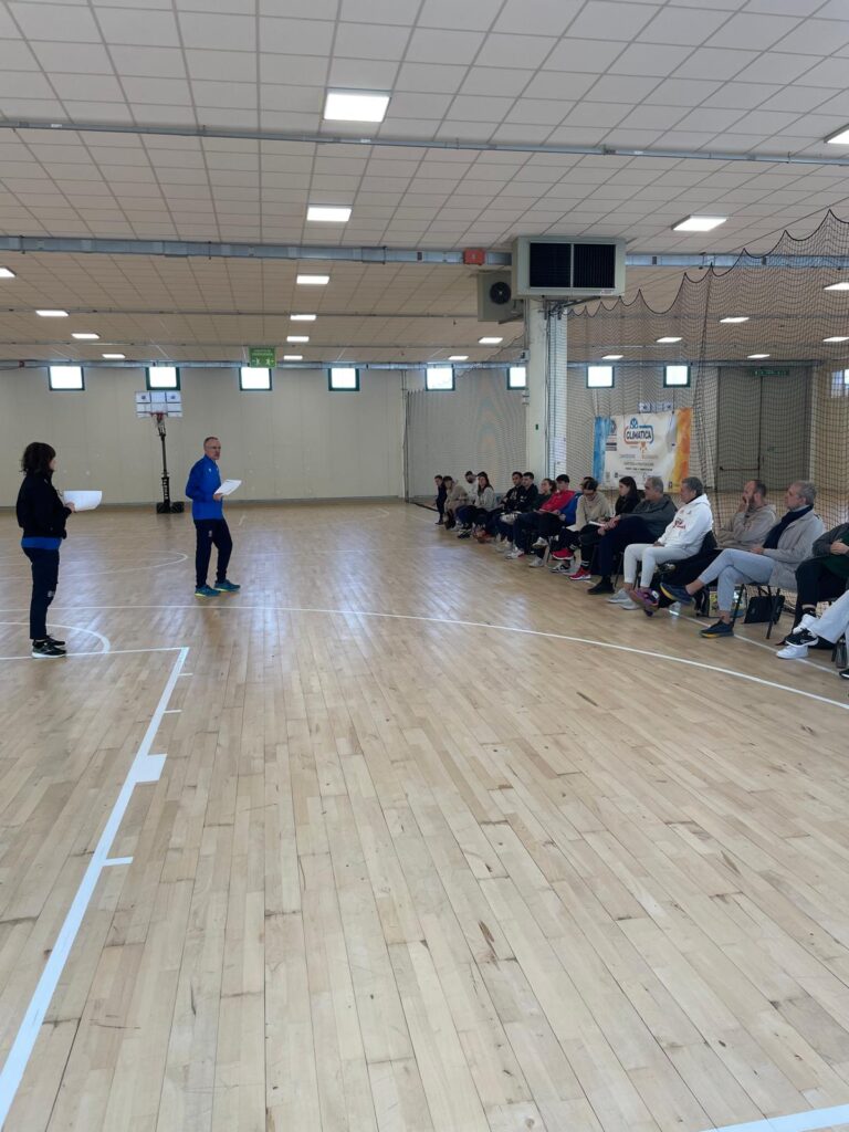 ✅ Prosegue il Corso Istruttori primo anno alla Fiera di Cesena. Il CTR Johnathan Angeli ha conosciuto il gruppo di corsisti interessati a comprendere la metodologia Minibasket e dopo il “compito” a gruppi, si è scesi in campo con l’idea di presentare proposte adeguate ai relativi quadri di riferimento